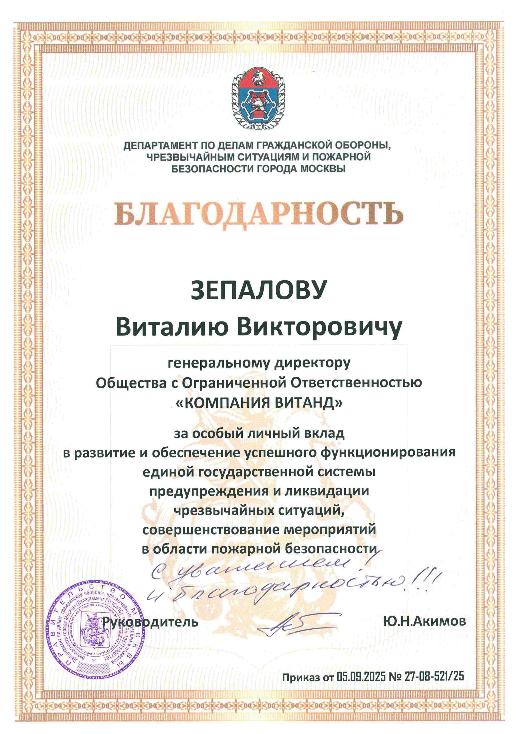 Благодарность Зепалову В.В.